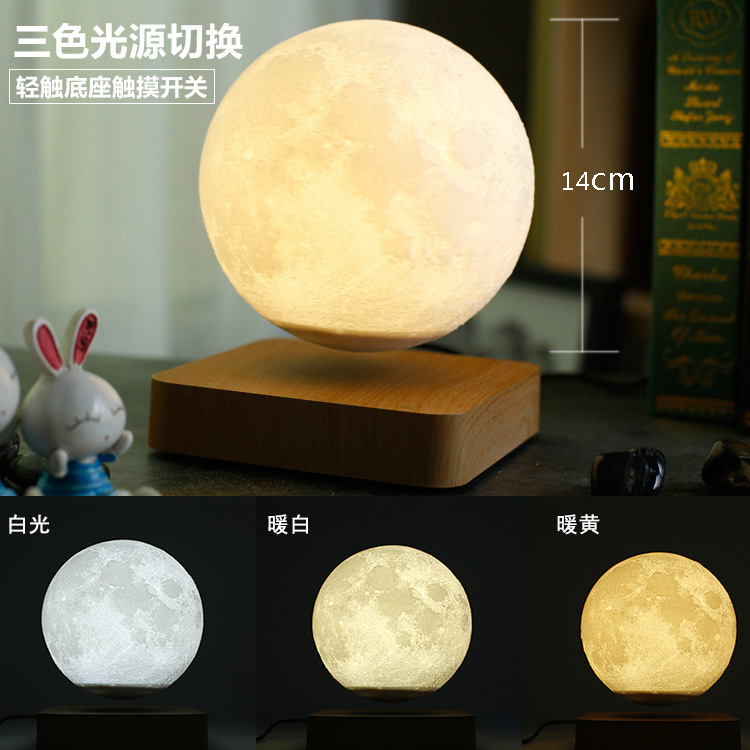 6 inch (140mm) - Light wood grain suspended moon (tri-color light source)