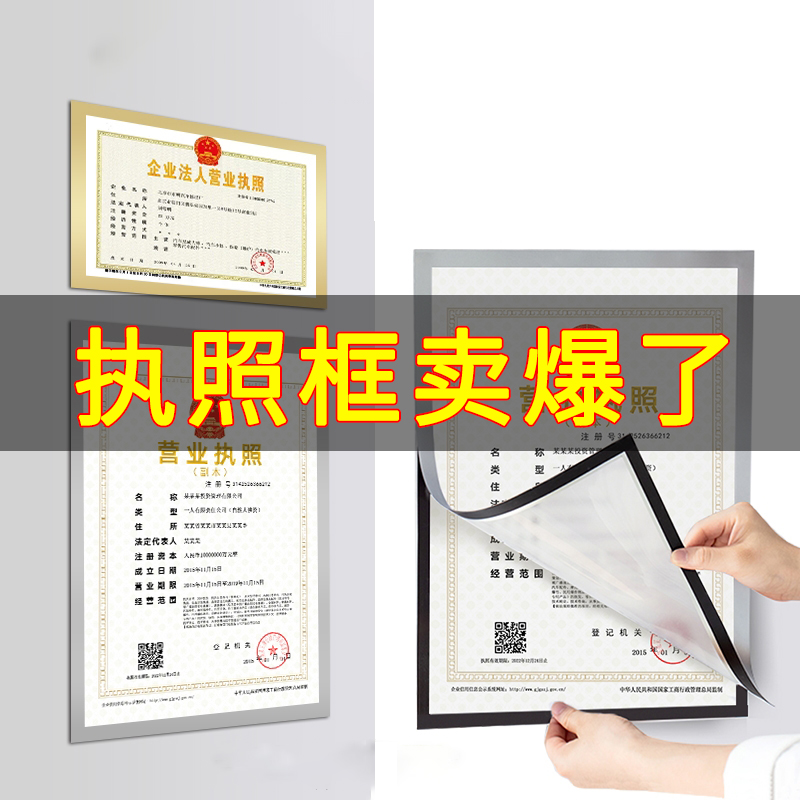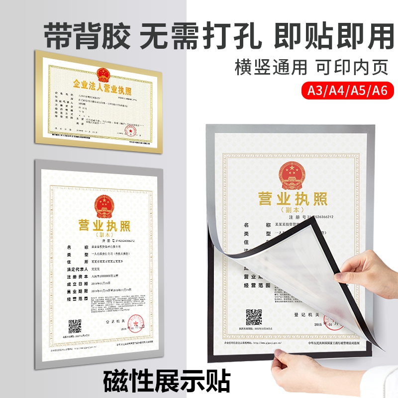 Magnetic business license frame a4 display frame protective cover photo frame A3 magnetic magnet sticker wall hanging wall frame certificate