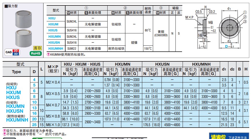 Mithrice magnet HXUMN HXUSN HXUMNH4 5 6 8 10 13 13 20 20 25