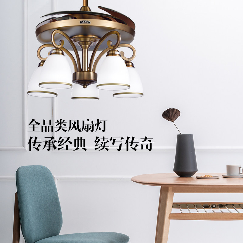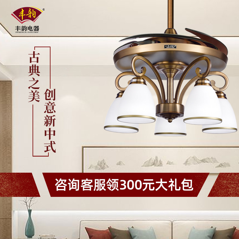 Fengyun original ceiling fan lamp New Chinese style invisible ceiling fan lamp chandelier Living room dining room Retro household ceiling fan lamp dining room