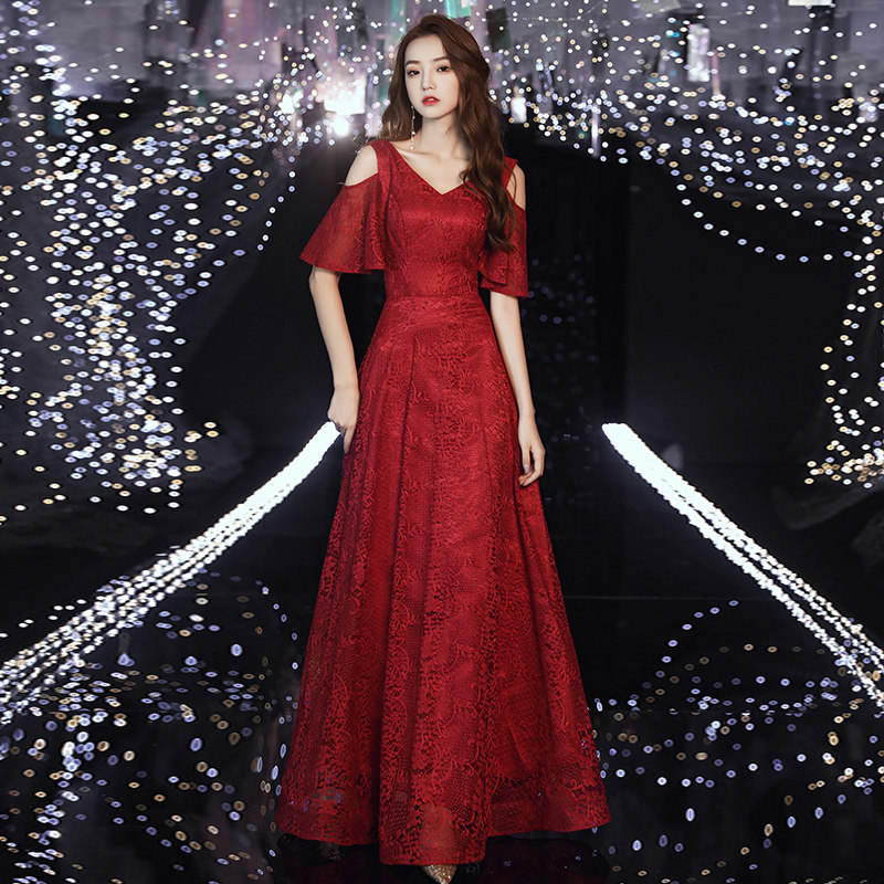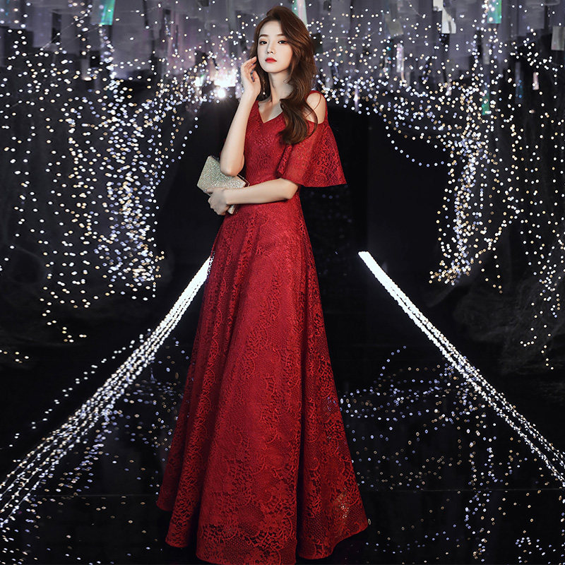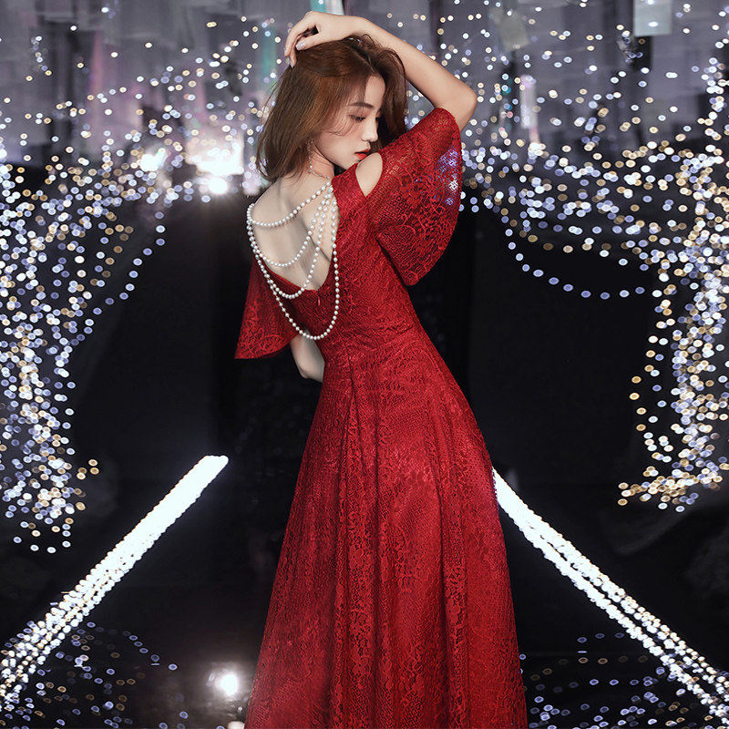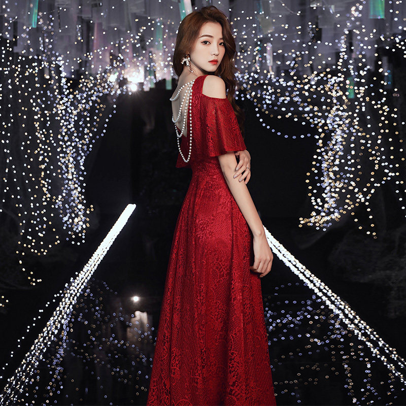 Bridal toast dress wedding red 2021 new lace summer engagement evening dress skirt female back door can usually be worn