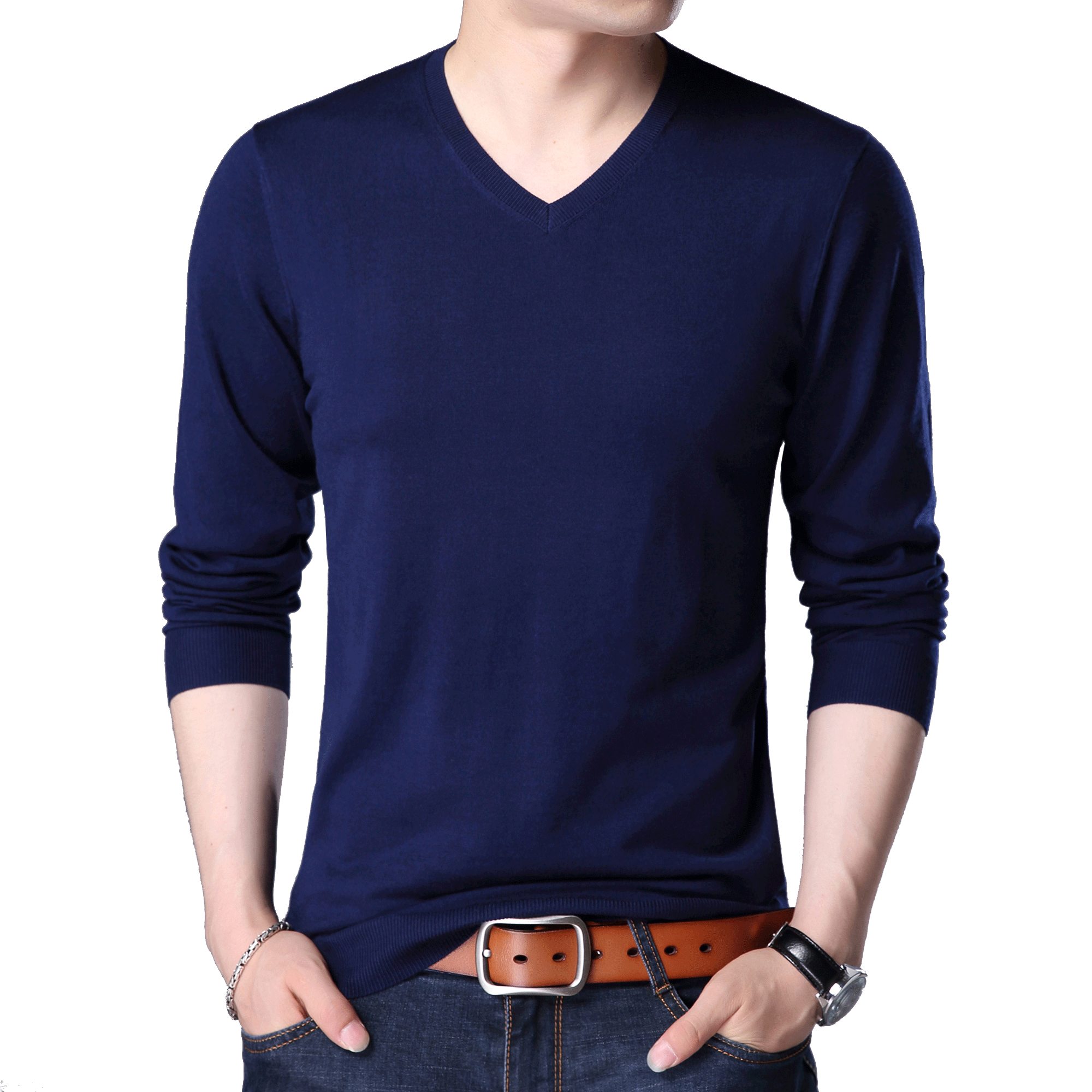 Goat sweatshirt male V collar pure color Korean version sweater men's V collar long sleeve thin undertych jersey undershirt spring autumn-style T-shirt