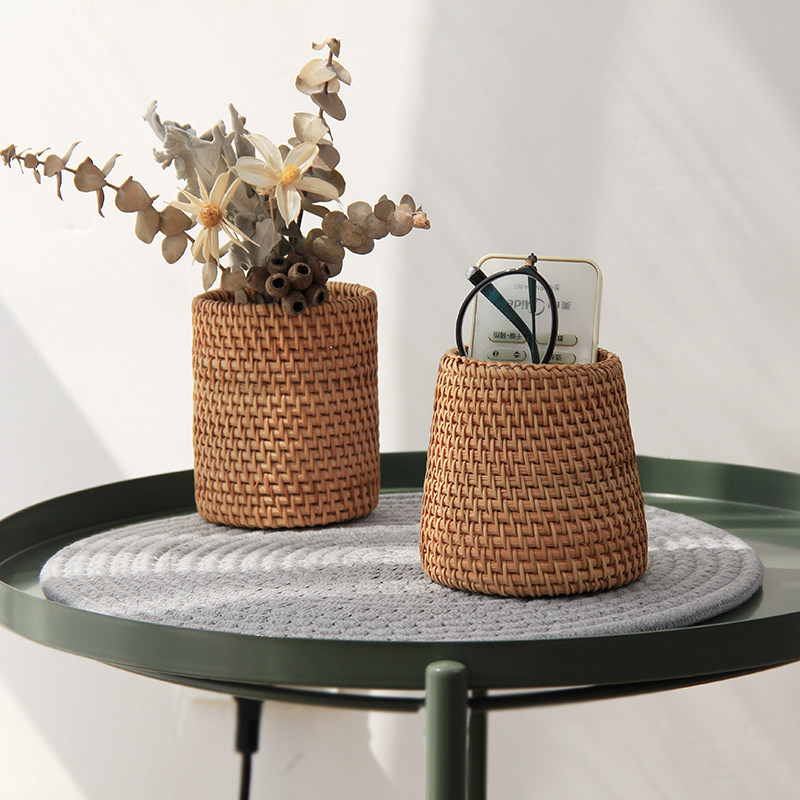 Art stationery make-up small number of pen holder containing box South Indonesia's autumn rattan braiding woven containing barrel tea road accessories storage