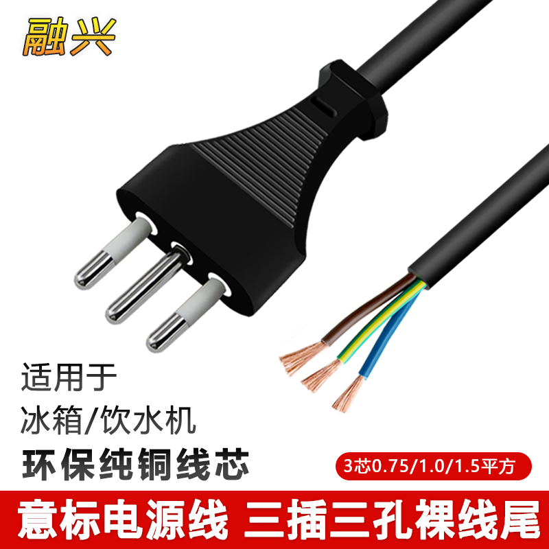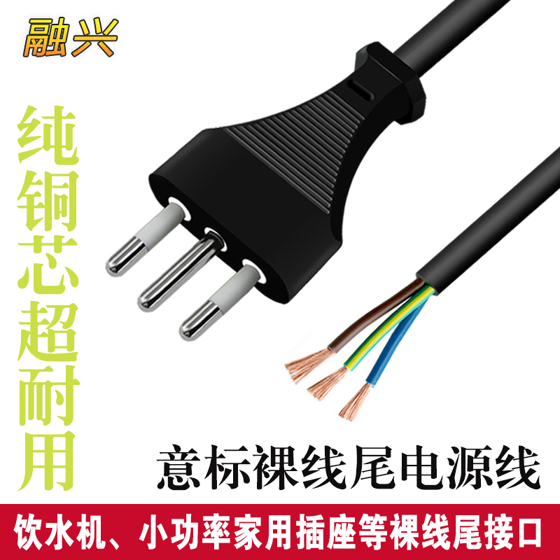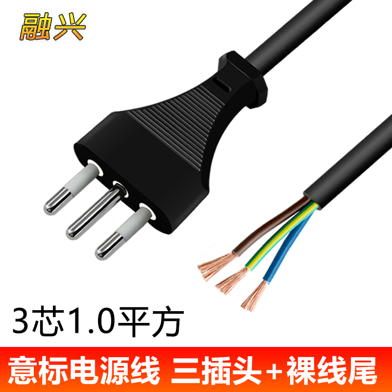 Italian power cord 3-core with wire plug Chile pure copper power cord 3X1 5 square Italian standard three-plug bare tail wire