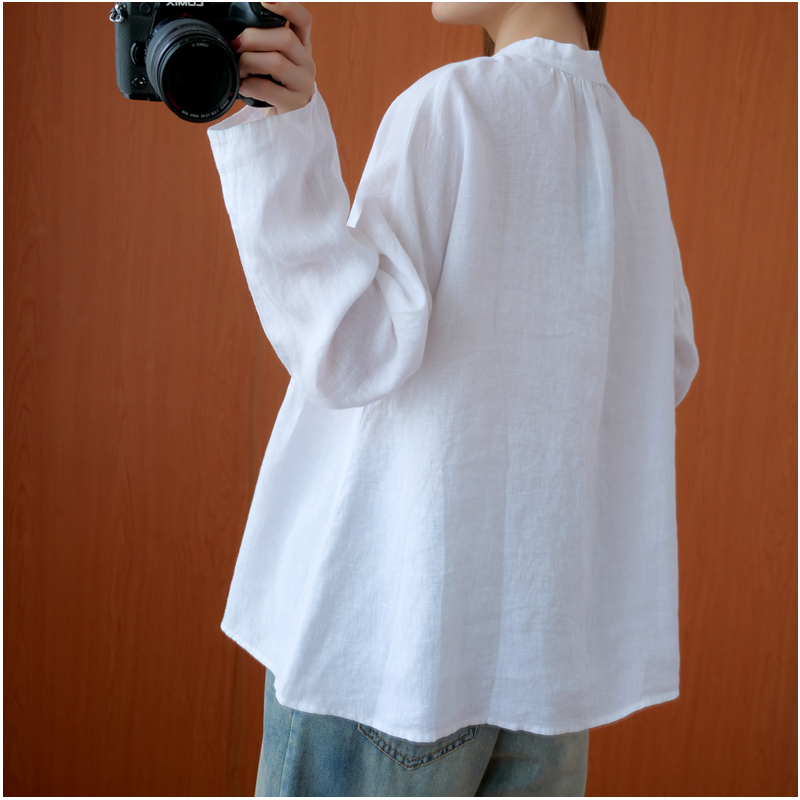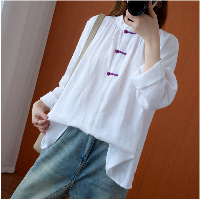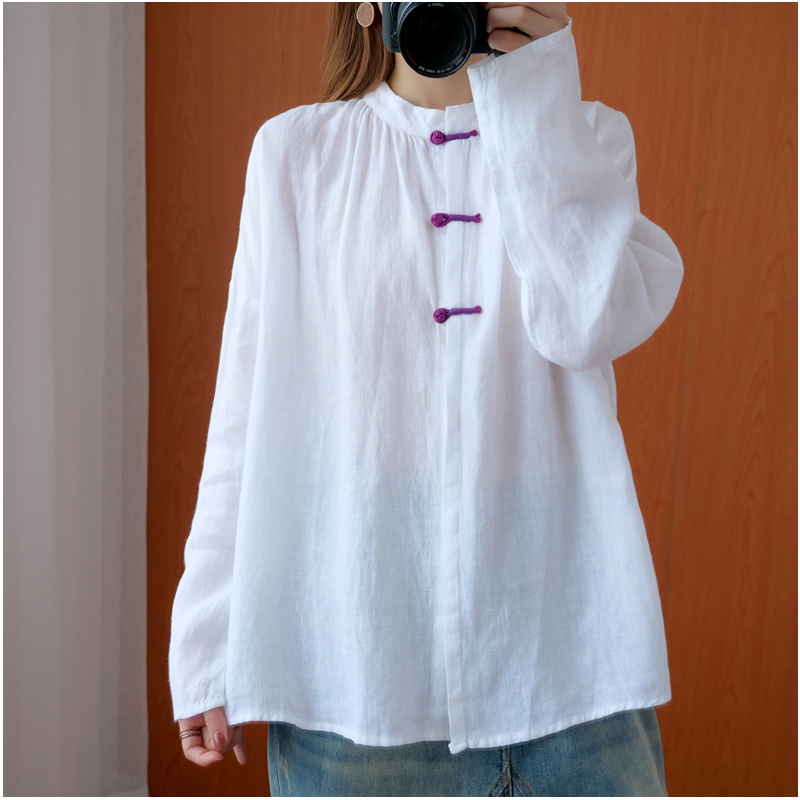 Fall Art Retro Numb shirt woman long sleeve cardiovert Chinese style Republic of China Wind disc buckle loose cotton linen jacket tea suit