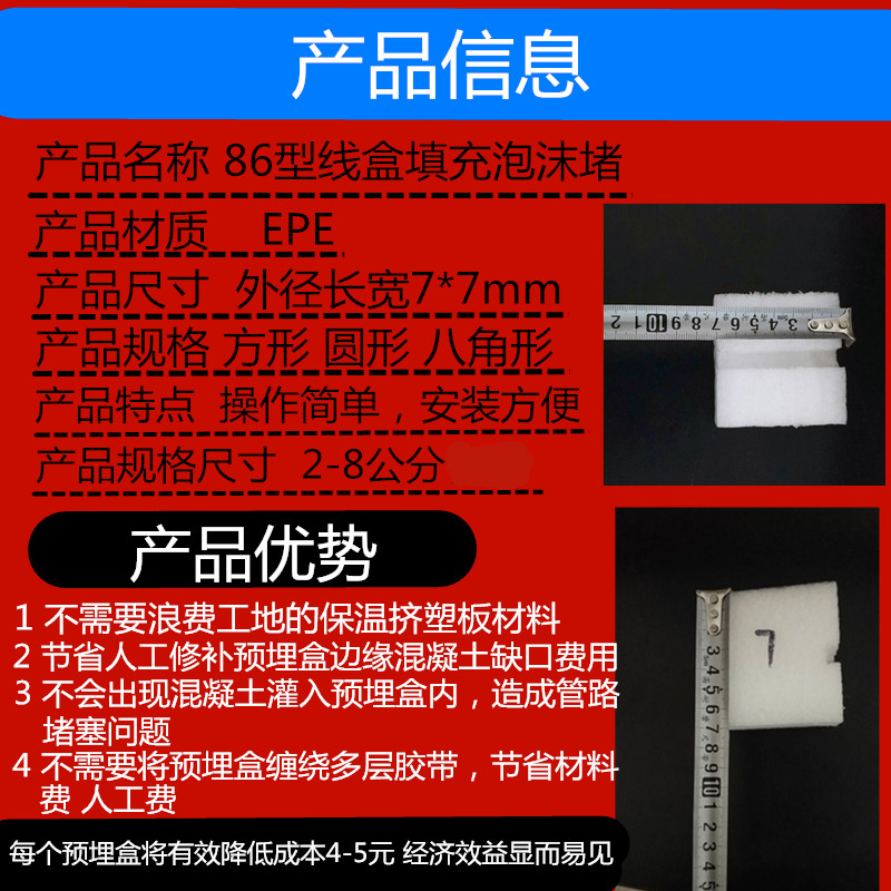 Type 86 line box filled with foam pre-buried line box filled with foam plug protection cover plug switch bottom box filled with foam