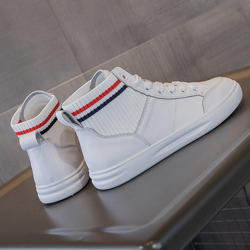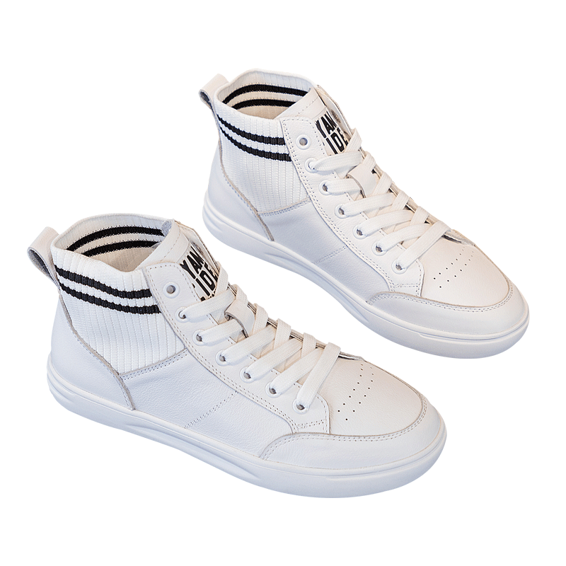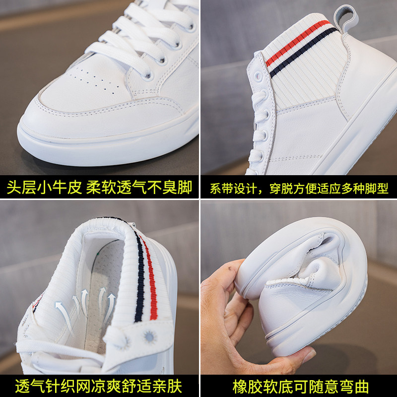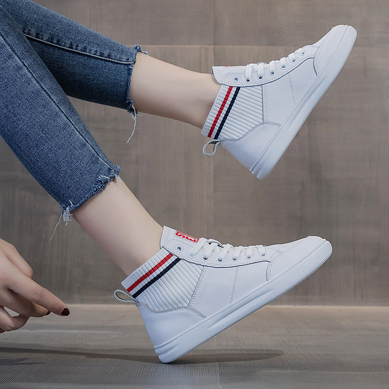 Summer white leather high-top shoes women's 2022 hot style all-match top layer cowhide breathable small white shoes 41 large size shoes
