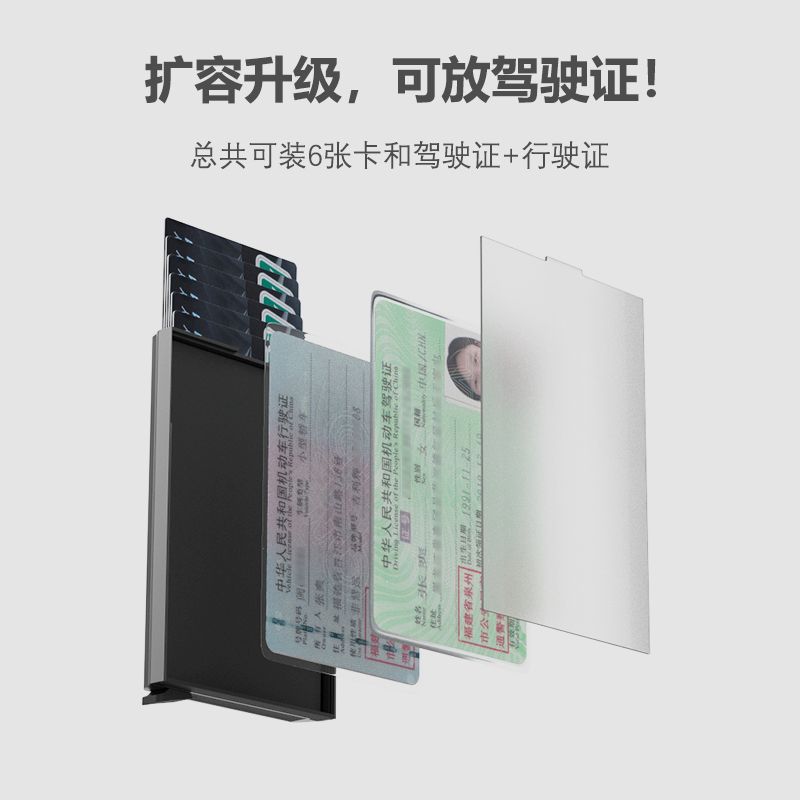 Automatic pop-up metal bank card case ultra-thin anti-magnetic anti-theft brush driving certificate integrated two-in-one card bag