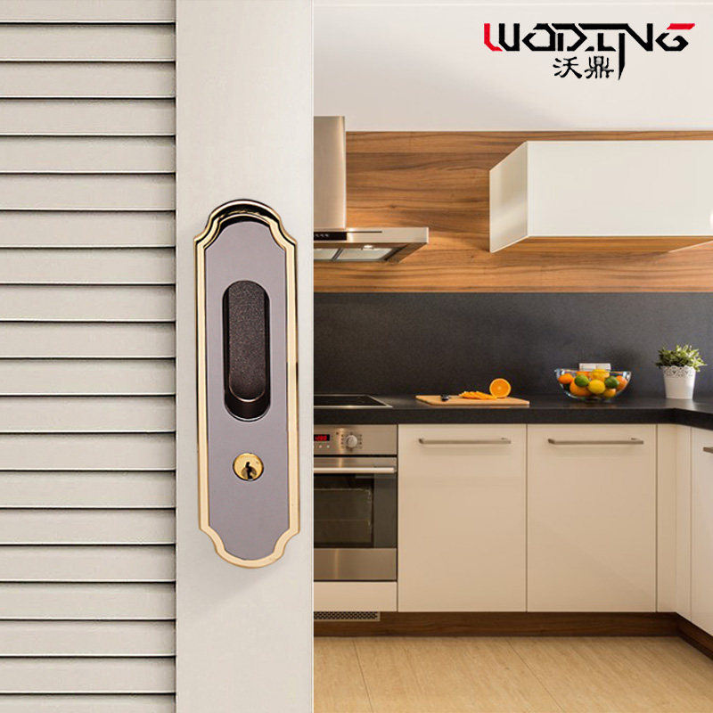 Kitchen left and right sliding door lock with key toilet sliding door hook lock bathroom translation indoor wooden door invisible door lock