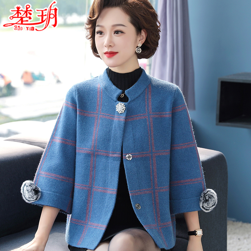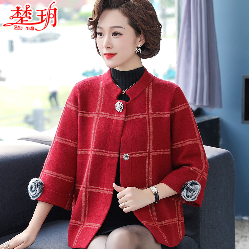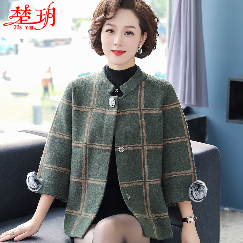 Mom Autumn Dress Foreign Pie Jacket Cardiovert Blouse 2020 New 50 Year Old Lady Autumn Winter Fashion Sweater Suit