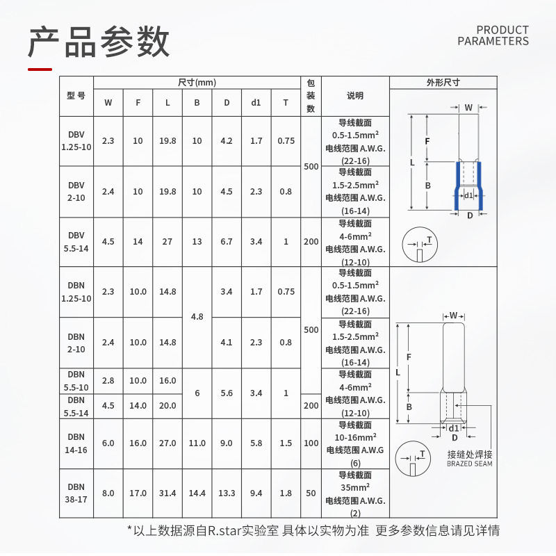 R star pressure wire pliers wiring cold pressure terminal sheet type red copper thickened anti-rust strong conductive anti-corrosion wiring head