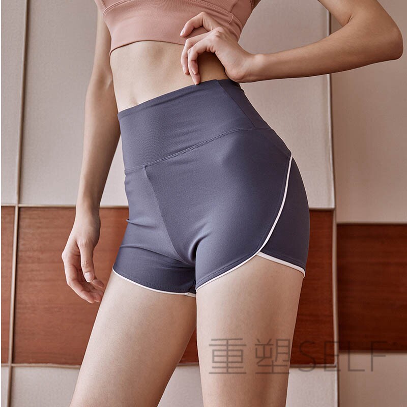 Hip high waist peach sports shorts women's fast dry tight elastic hip training fitness pants bag hip yoga hot pants