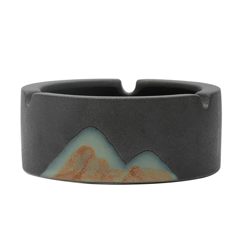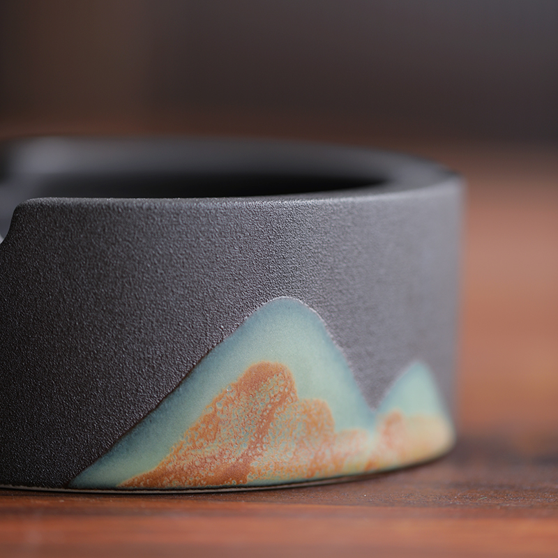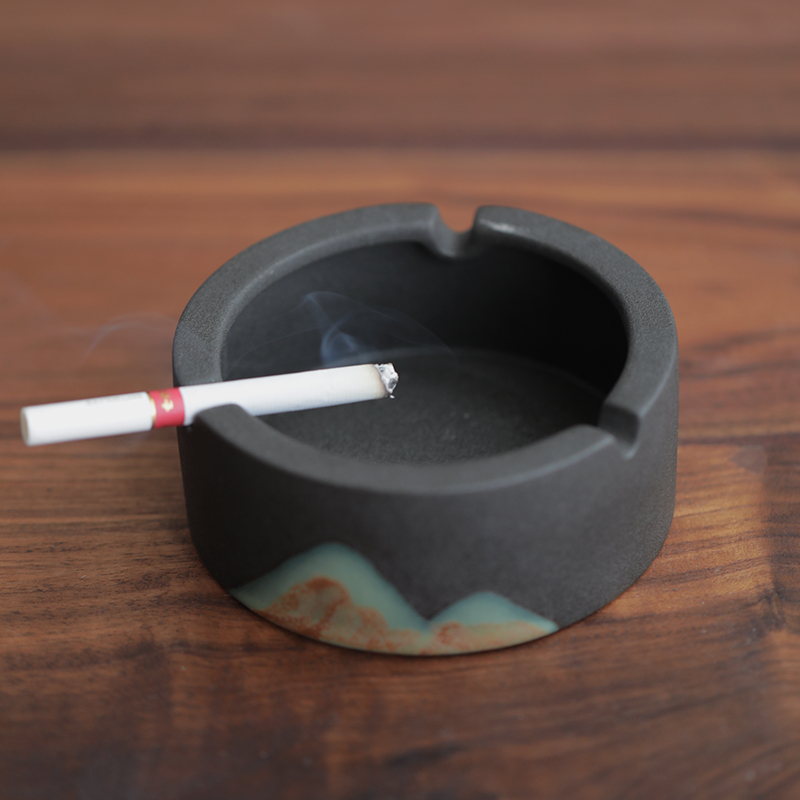 Hongji Creative ashtray Office atmosphere Simple home living room Home black pottery Personality tea ceremony accessories