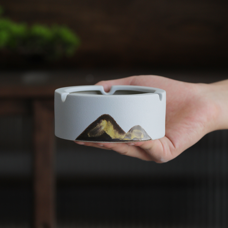 Yuanshan Coarse Pottery Ashtray-Moon White Yuanshan Coarse Pottery ashtray-Zen Black