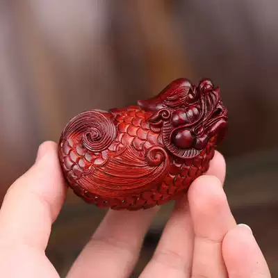 Fuyunchang India small leaf red sandalwood fish dragon hand piece twelve Zodiac dragon play piece hand wood carved ornaments