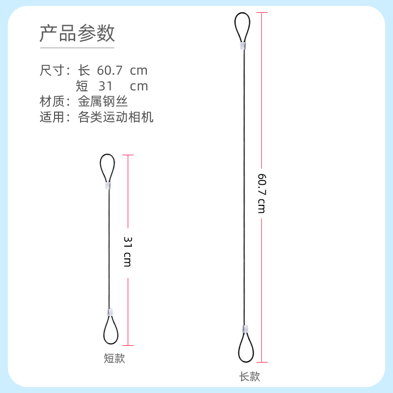 Applicable gopro8 7 5 metal safety rope insta360oner motion camera insurance hanging rope safety buckle anti-loss rope