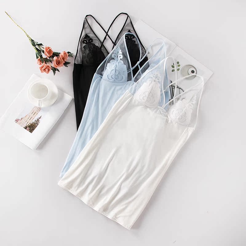 MannIfen sling deep V nightdress with chest pad mid-section summer solid color modal embroidery sexy beautiful back home clothes for women
