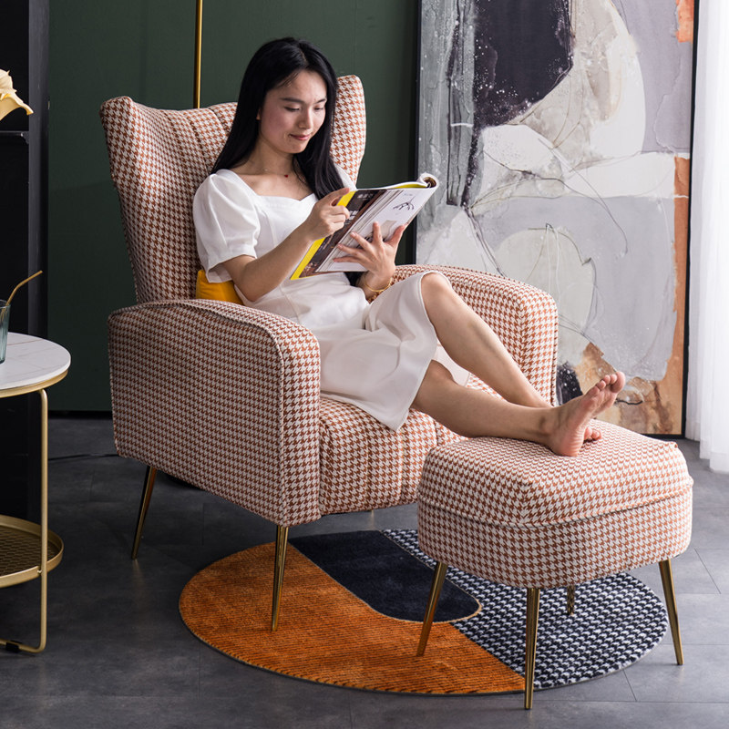 Nordic single sofa light luxury modern minimalist small apartment living room balcony bedroom lazy houndstooth net red chair