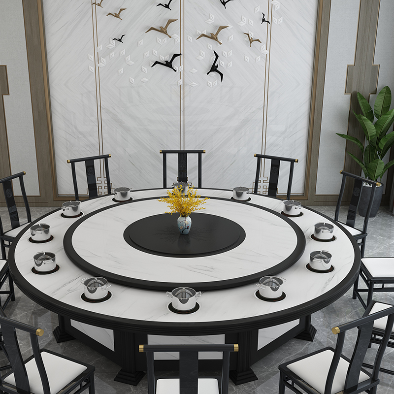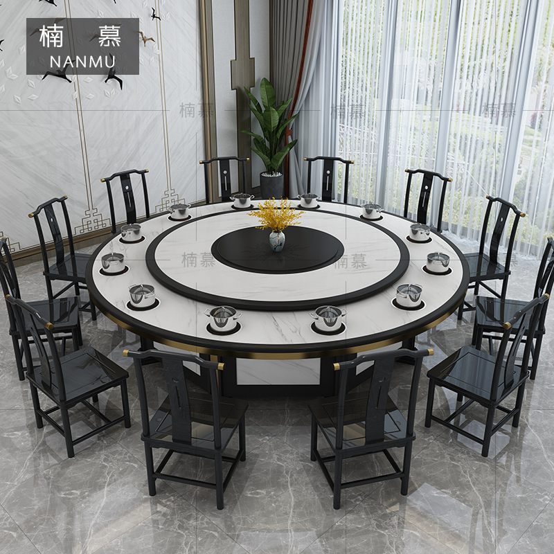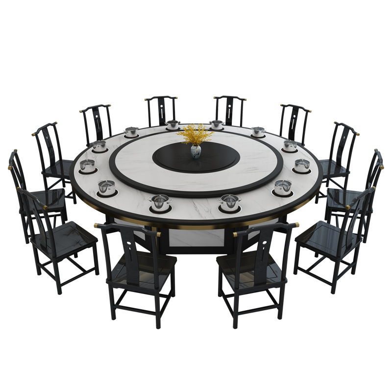 Hot Pot Table Electric Dining Table Hotel Dining Table 15 People New Chinese Solid Wood Imitation Marble Hotpot Table induction cooktop
