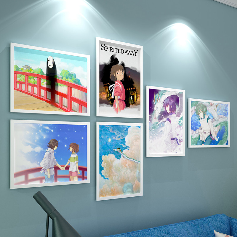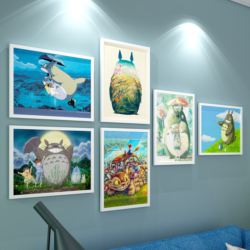 Solid wood photo wall cartoon animation Hayao Miyazaki collection Spirited Away hand-painted decorative picture frame hanging picture Totoro photo
