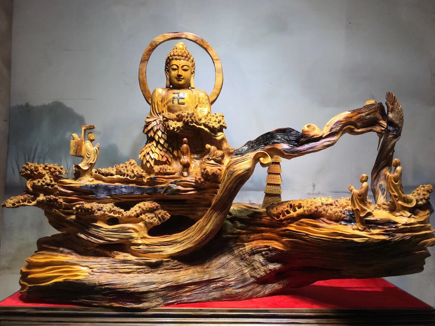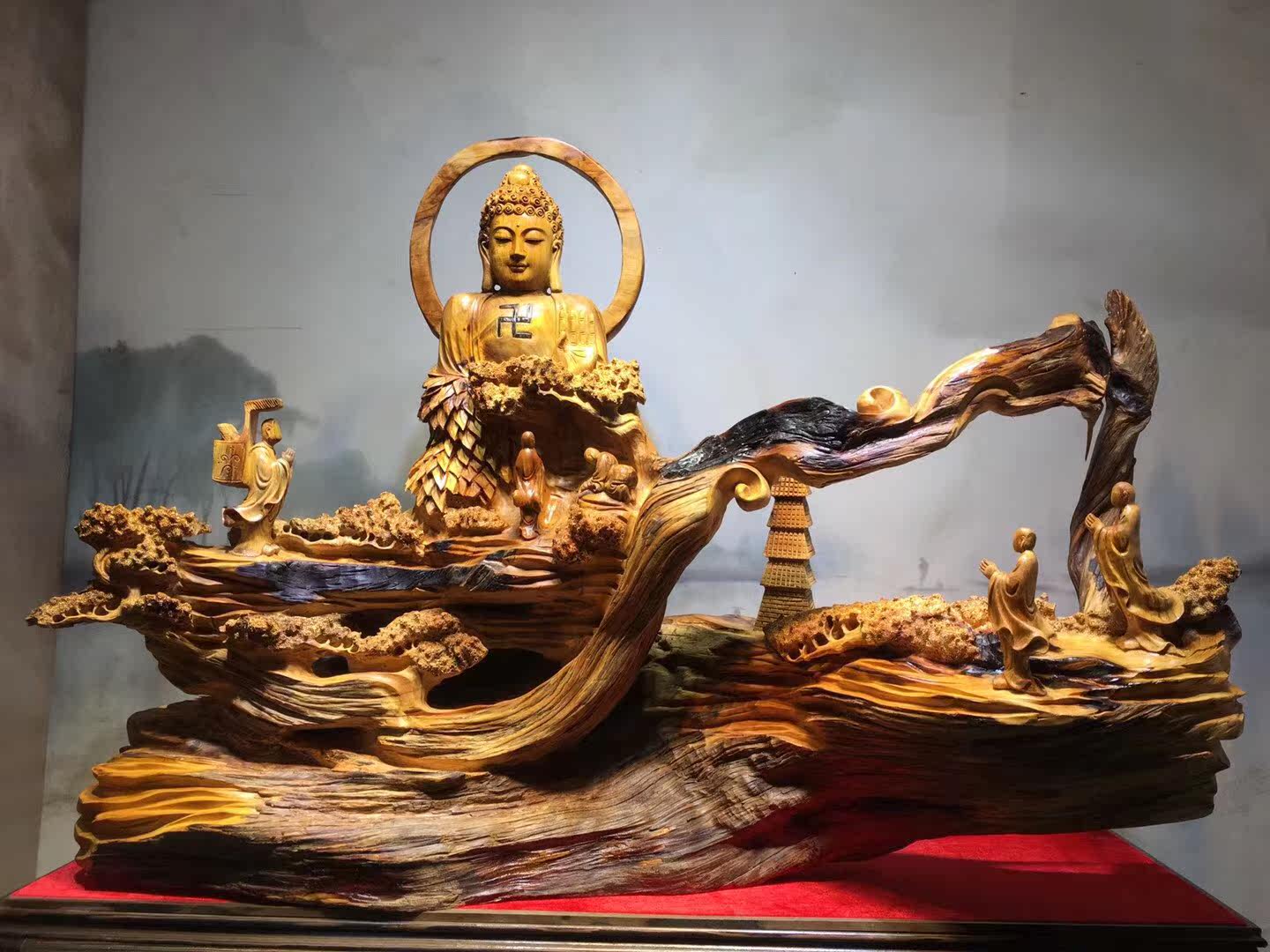 Root carved wood carving ornaments Ten Thousand Buddhas Chaozong Chenhua Cliff Cypress old material material clean gift home mood ornaments