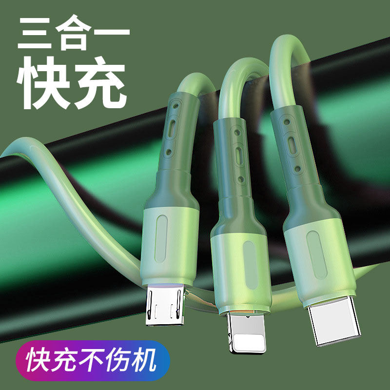 Apply Huawei 5a Data line Three-in-one Liquid Silicone One Tug Three Charging Wire Instrumental Three Heads Fast Filling Apple Type-C Anjo Multipurpose Vivo x50 Mobile Phone On-board Lengthened Versatile