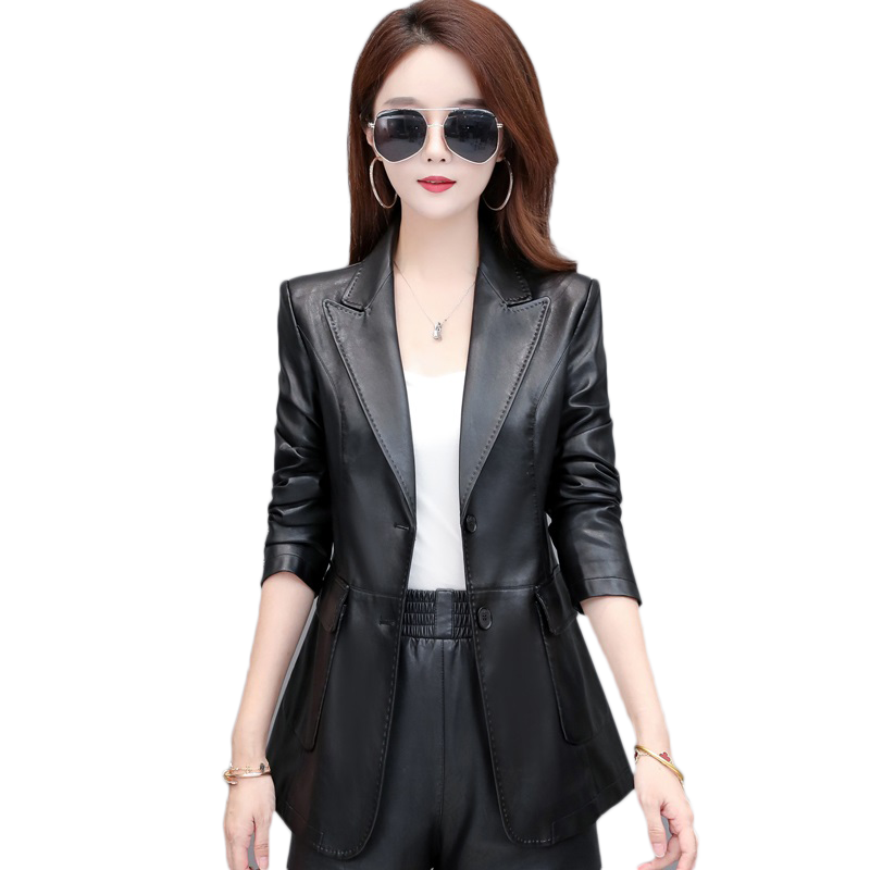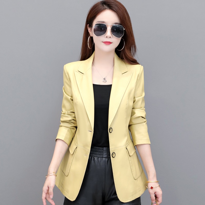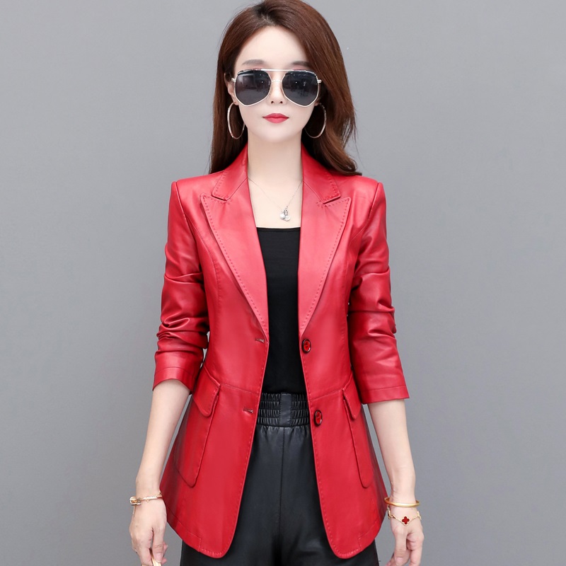 Haining leather coat girl short coat 2023 Spring and Autumn new Han edition of a thin suit locomotive leather jacket