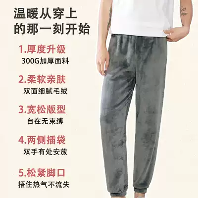 Winter men's pajama pants coral velvet warm plus velvet padded trousers autumn and winter flannel warm pants home clothing pants