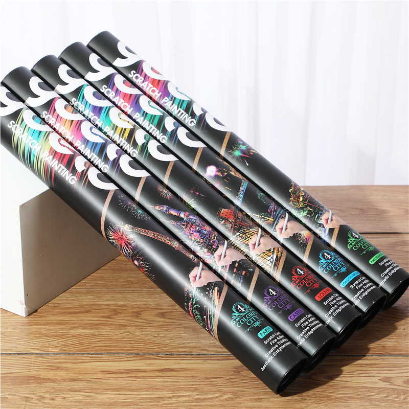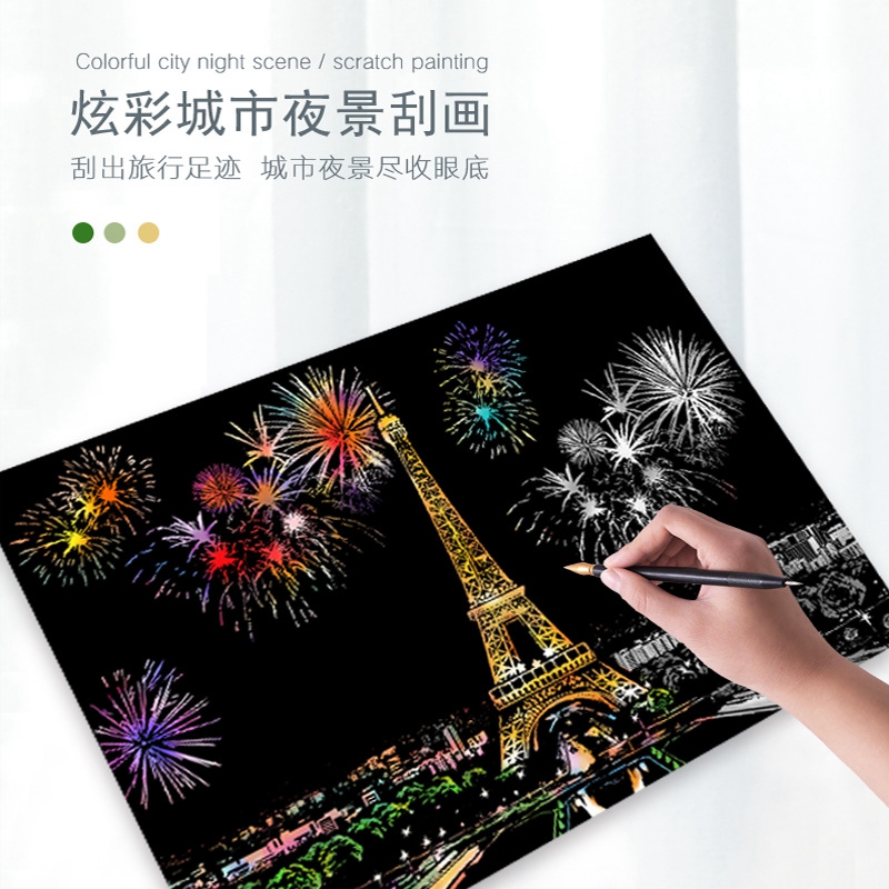 Drum Colored City Night View Scrapbook Scrape Painting Adult Decompression Handmade DIY Scraped Paper for Girls and Girls Day