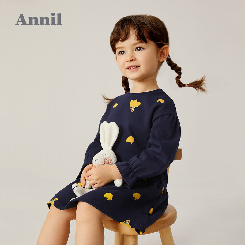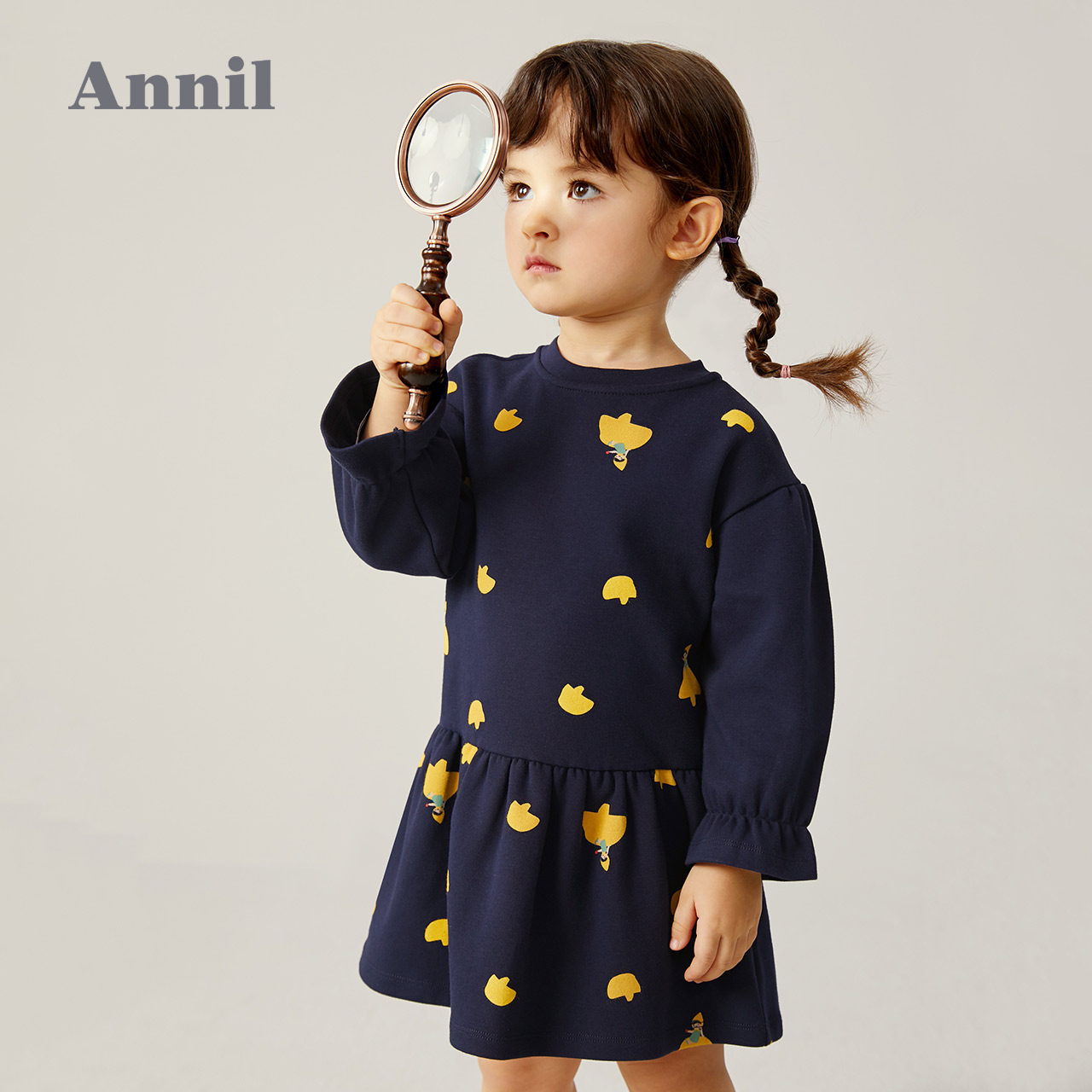 Annil Children's Dress Girl Dress Long sleeve collar Spring and Autumn New Yang Printed Girl Baby Dress