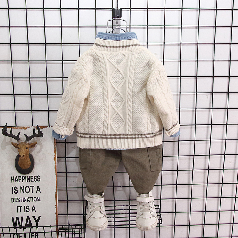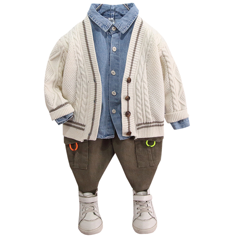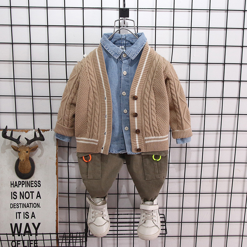 Boy Clothing Boy Fall Cardiovert Sweater Suit Baby New Foreign Pie Spring Autumn Clothing Baby Boy Handsome 3 sets