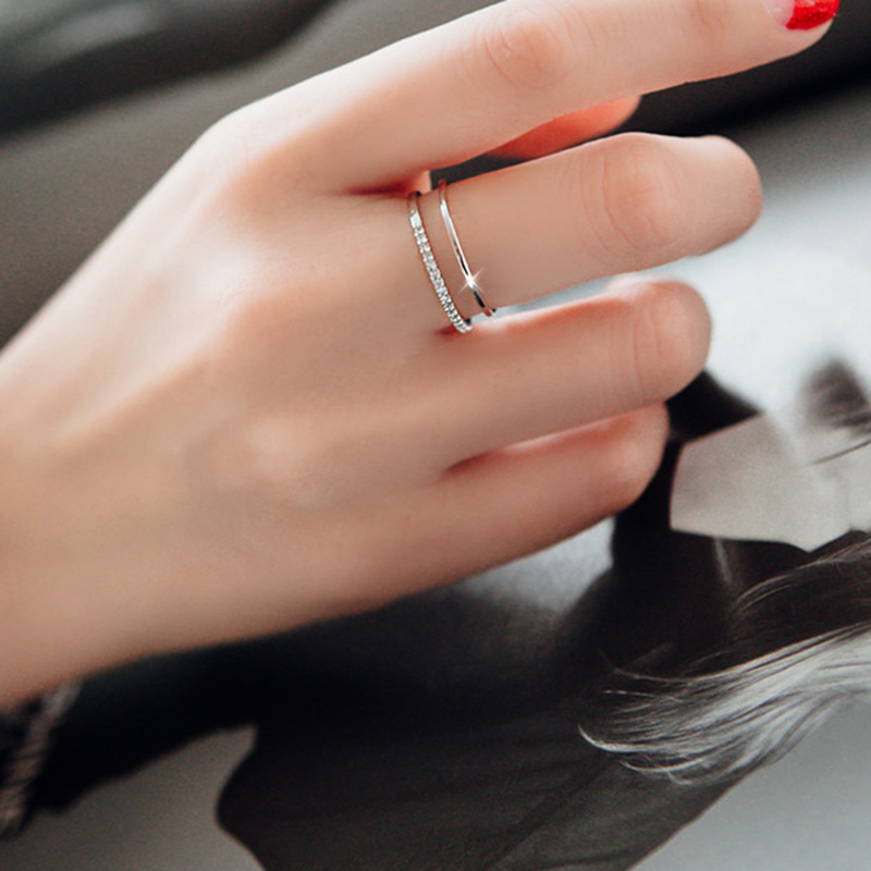 925 pure silver zircon ring female Korean version ins lukewarm wind light extravagant and small crowddesign Sensation Flash Drilling Adjustable opening ring