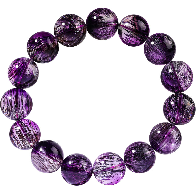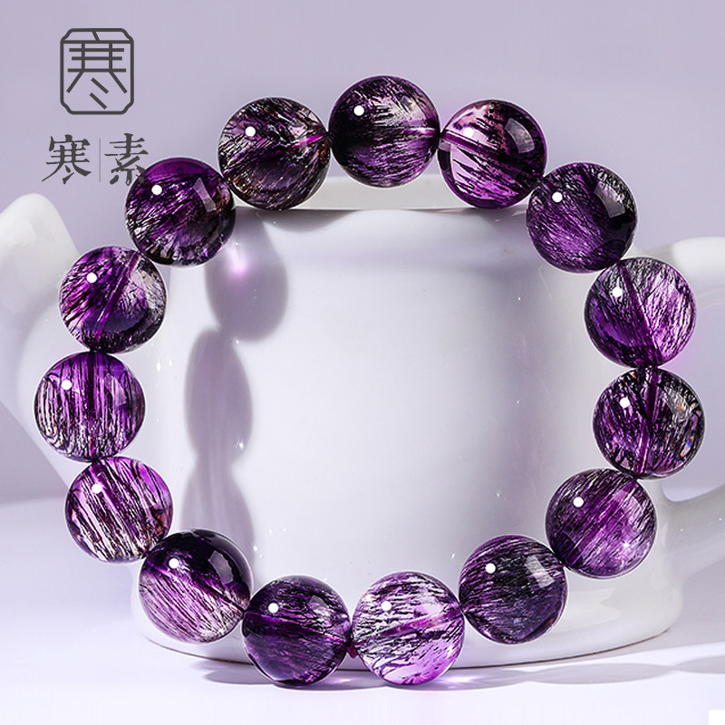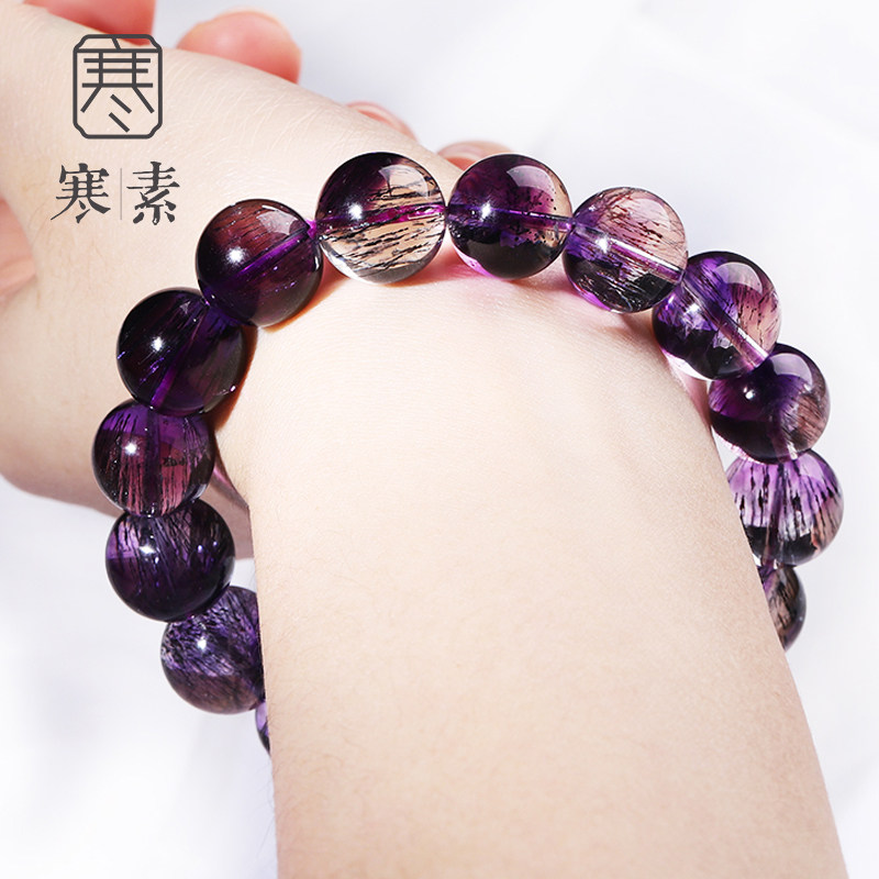 Cold Vegetarian Natural Purple Black Supple Seven Hand-made Purple Hair Crystal Collection Grade Single Ring Crystal Gem Handstring