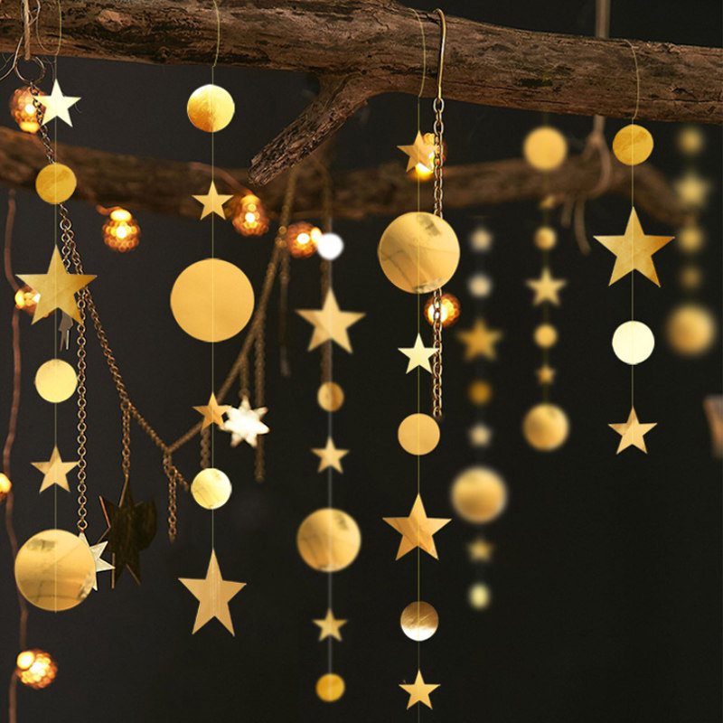Christmas atmosphere decoration Lahua shopping mall classroom birthday ribbon string five-pointed star hanging decoration decoration decoration decoration
