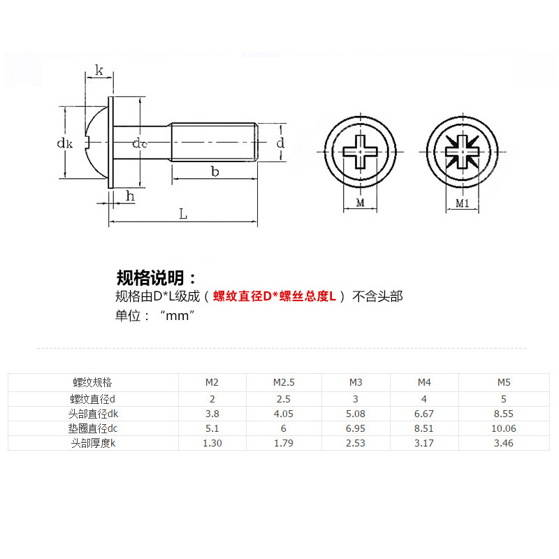 M2M2 5M3M4M5 304 stainless steel pan head cross with pad screw round head machine screw with intermediate machine wire bolt