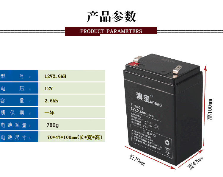 12V2 12V2 6AH 780G Single battery 12V2 6AH 780G 12v1A charger