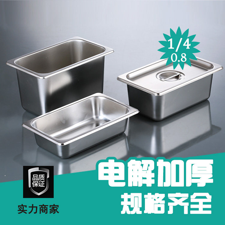 Stainless steel portion pot buffet insulation box with lid square pot thickened fraction box food vegetable pot salad box