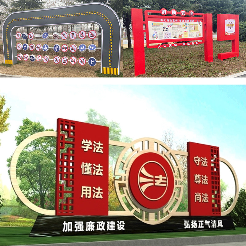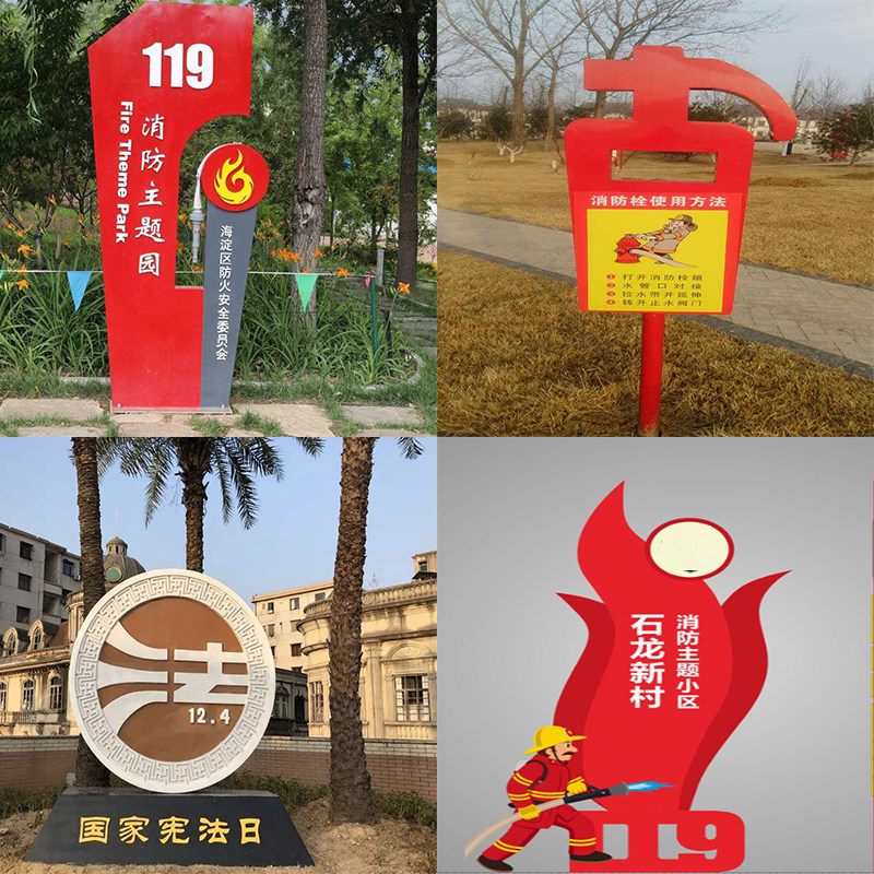 Custom Fire Theme Park Plaza Billboard Knowledge Flip Card Chair Sketch Logo Cartoon Character Sculpture