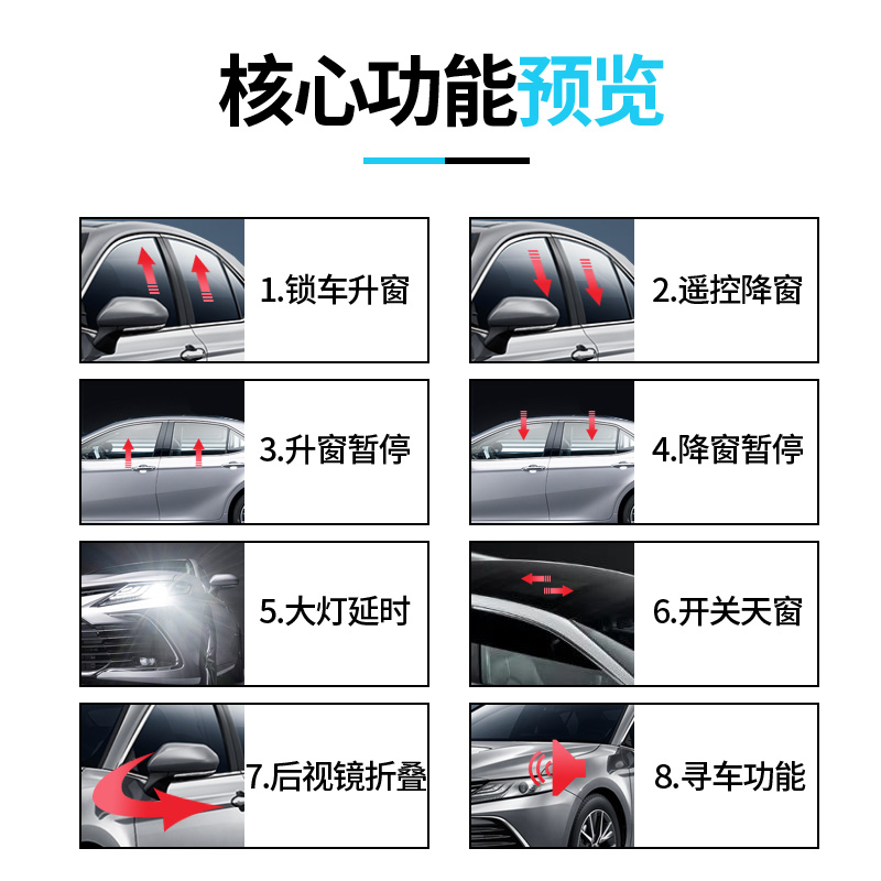 Suitable for ToyotaCAMRY one-button window lifter automatic window lifter and window closer rearview mirror folding modification accessories