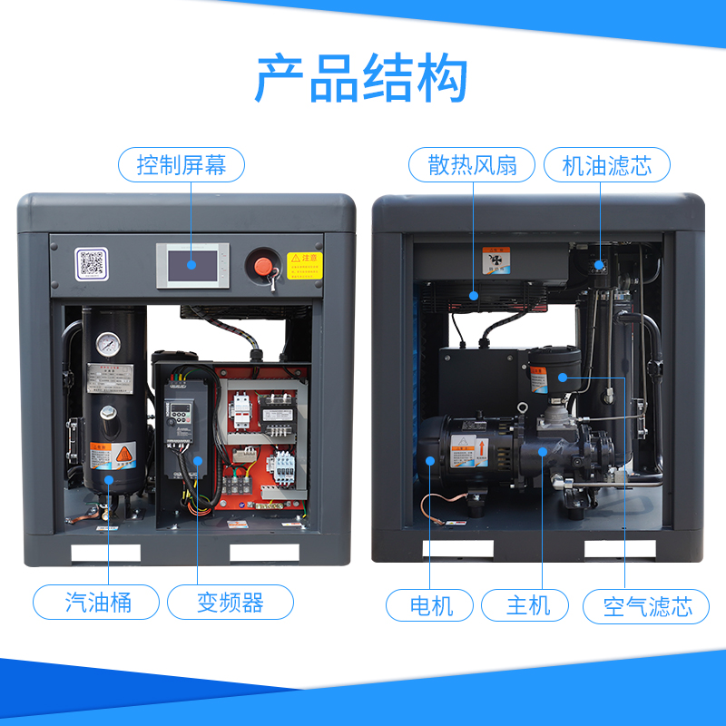 Screw air compressor 7 5kw permanent magnet frequency conversion power frequency screw machine air compressor factory direct sales mask machine