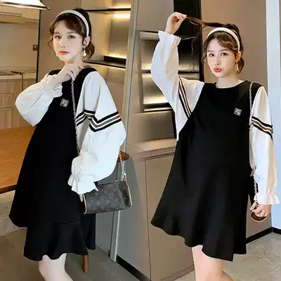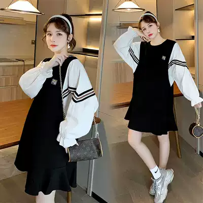 Pregnant women's autumn short skirts net red hot mom goes out to tide loose foreign pie to cover her belly and show thinness and not smile in the autumn of the dress