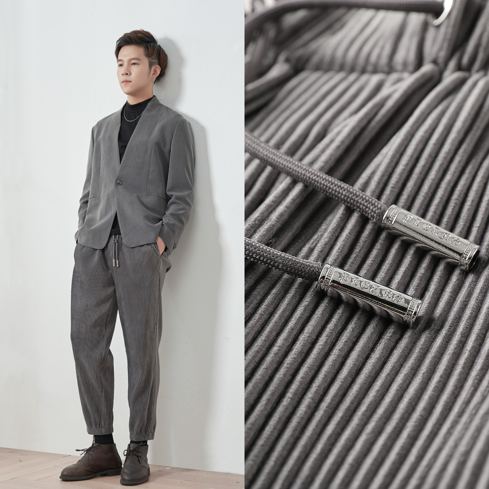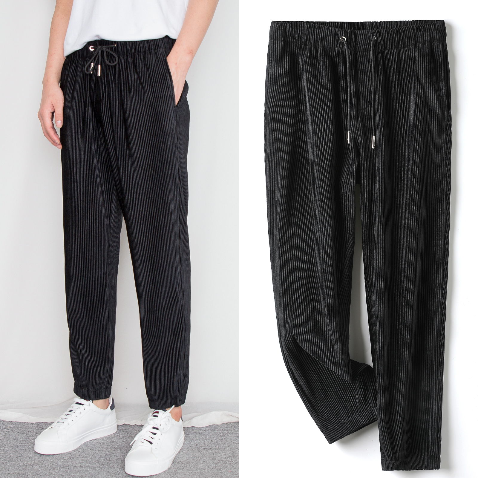 Corduroy velvet hanging Harem pants men's autumn vertical stripes pleated trend loose casual men's nine-point pants