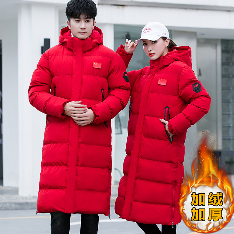 National Team Winter down cotton over knee Long version Military cotton Large clothes men and women Gardown thickened Anti-cold Northeast cotton jacket jacket