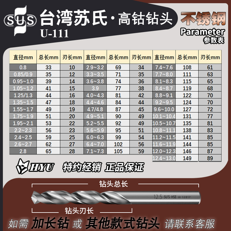 Su's high-cobalt drill bit stainless steel special cobalt-containing drill bit stainless steel punching high-speed mesh twist drill lengthened drill bit