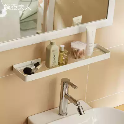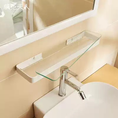 Bathroom storage rack Wall dressing room glass rack Wall toilet washing makeup table mirror front storage non-punching