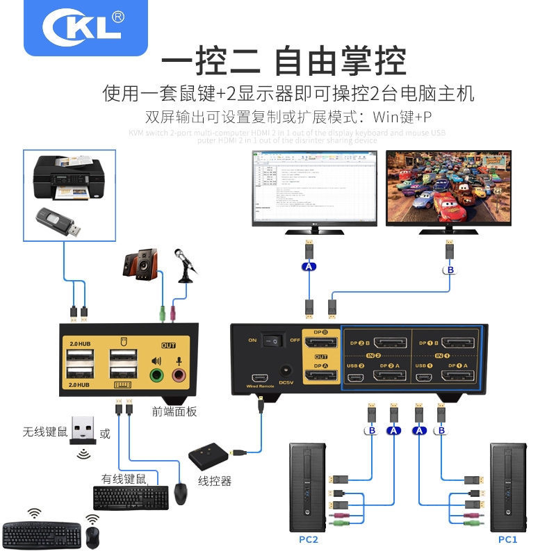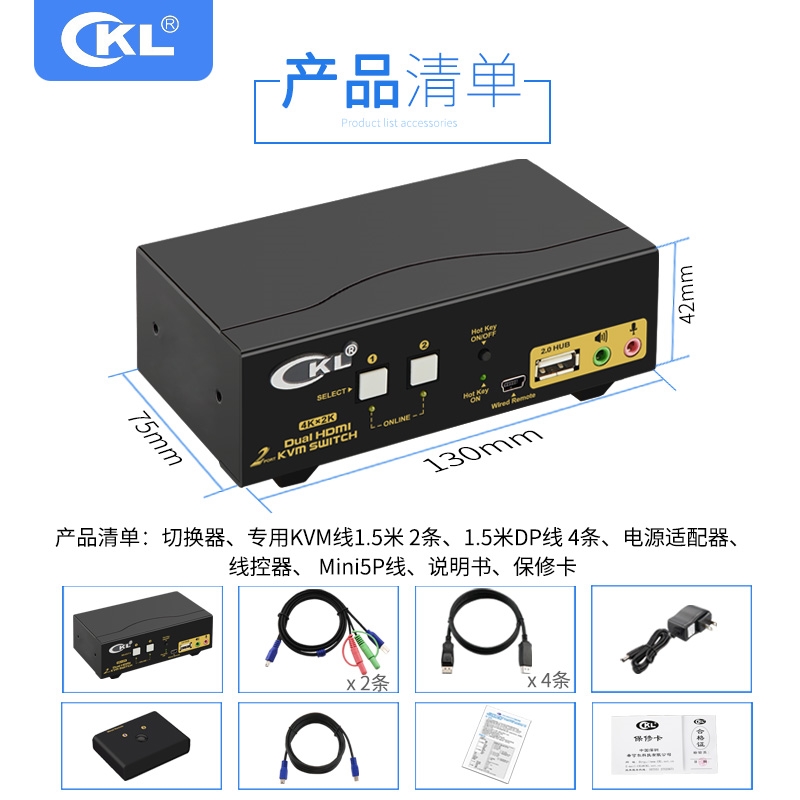cKL DP kvm switch dual channel DisplayPort dual screen expansion switching computer notebook keyboard and mouse monitor sharing multi-channel multi-screen expansion 622DP series