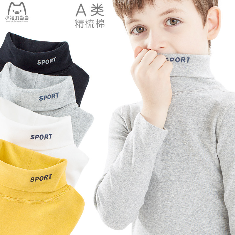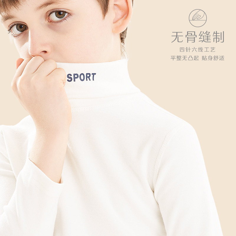 Boys' turtleneck leggings plus fleece children's long sleeves T-shirt autumn winter cotton white boys warm autumn coats