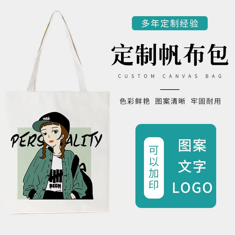 Customized pattern printed logo to print photo ordering environmental cotton shopping yoga student handbag