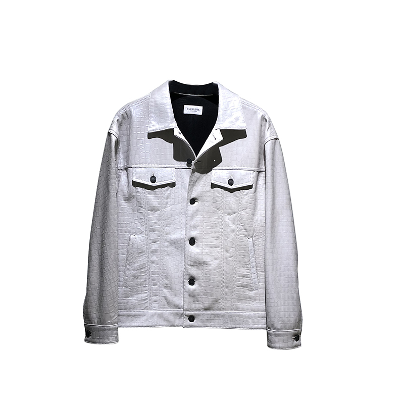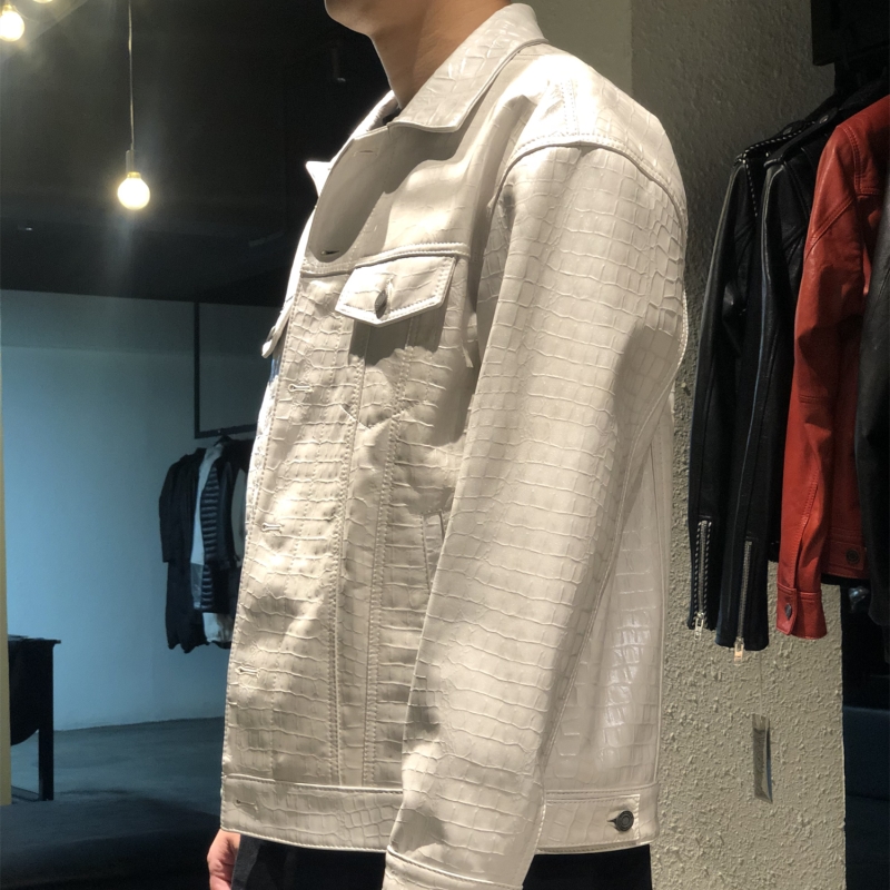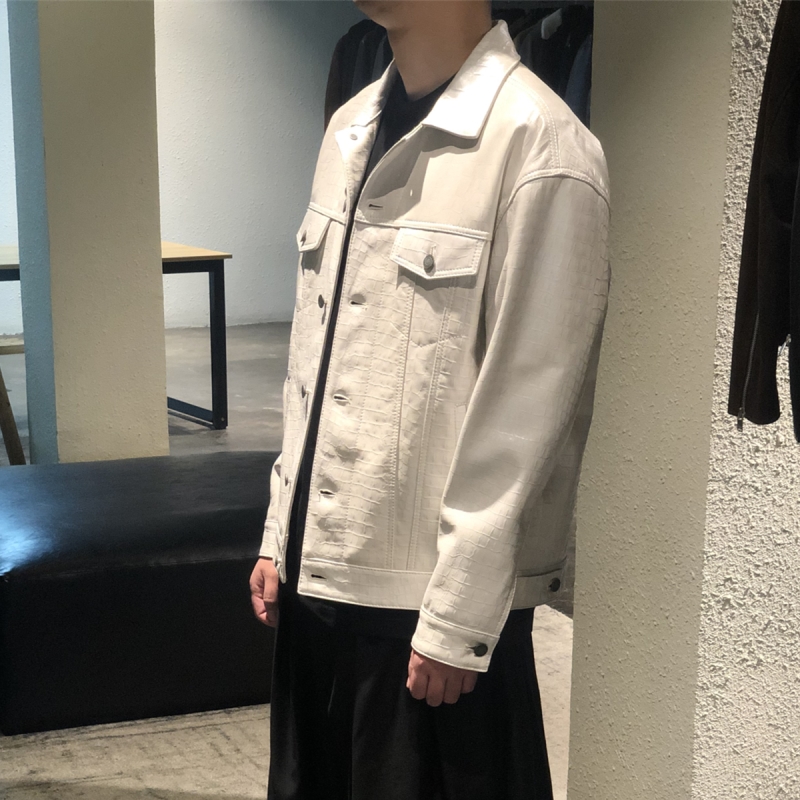 LA CALIFFA white to luminous crocodile pearl white light three defense goat leather loose version denim jacket