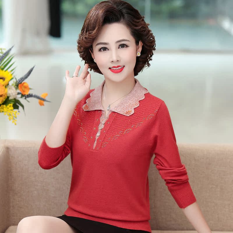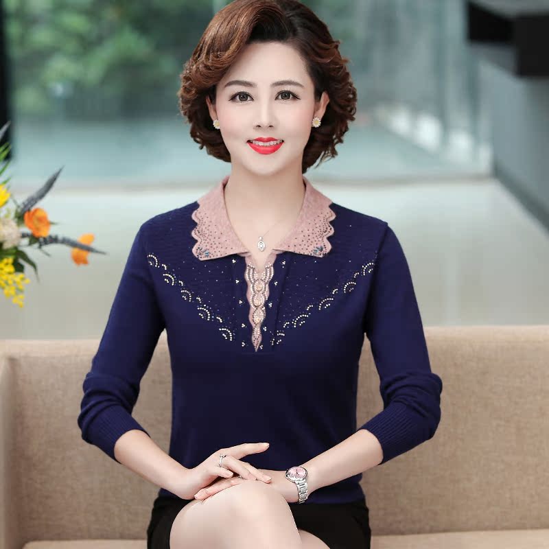 Middle Aged Spring Autumn Dress Women's Foreign Pie Blouses Add Fat Up Overweight Mom Thin Sweater Over the T-shirt
